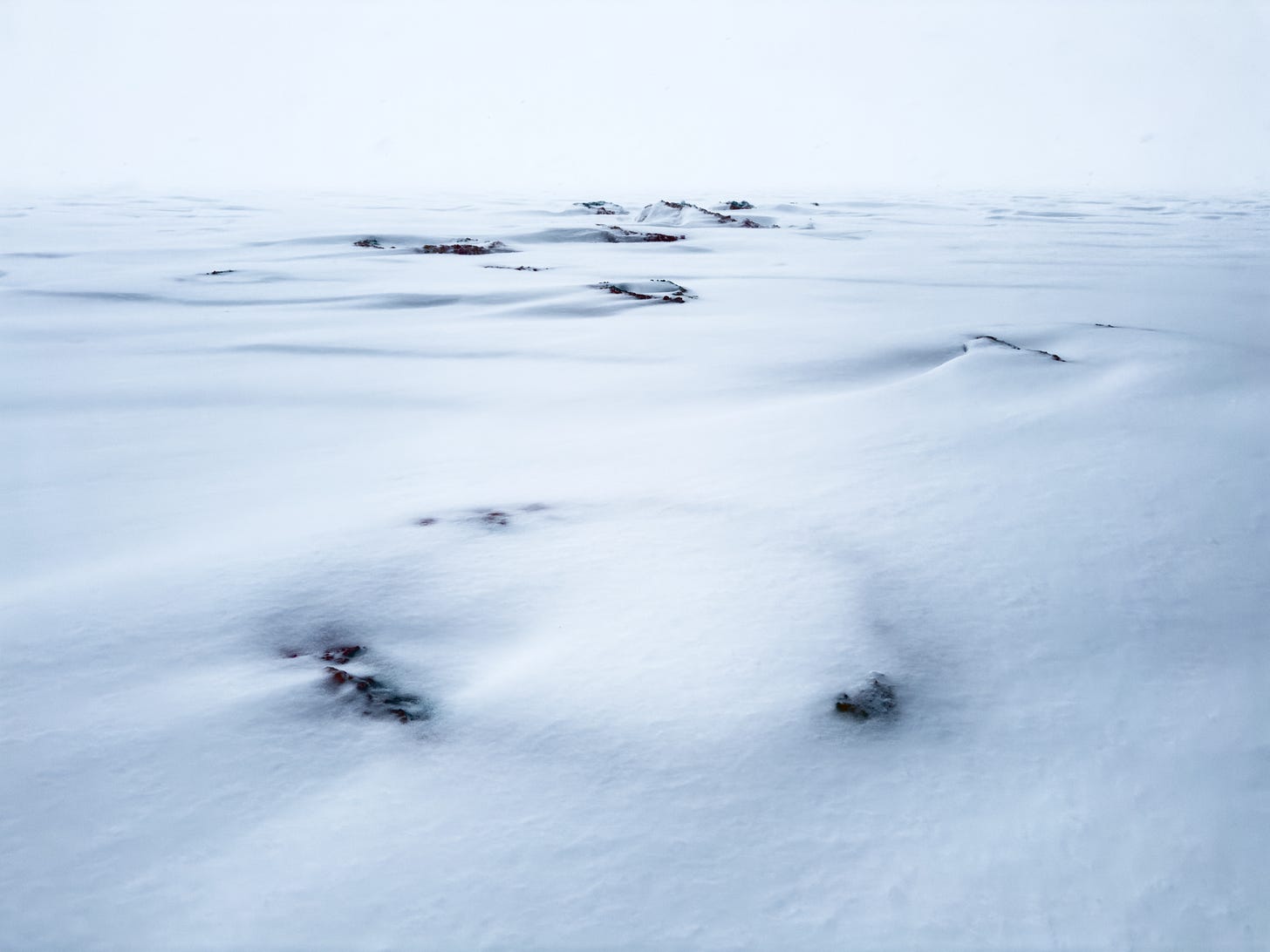 1.Weatherwork 2026: Every winter for 12 years now I’ve created an enormous land-art installation made with weather (wind, snow, ice, rain, topography). Every installation is spontaneously conceived and resolved in-process, because I want the work to be entirely intuitive, new, fluid in the moment, reactive to the conditions, and with me in my body not in my head. I only use tools at hand — a piece of lumber becomes a stamper, for example. The installation has to be completed by 3 pm in order to photograph it, and it often gets erased overnight by the elements¹, so I work furiously.
